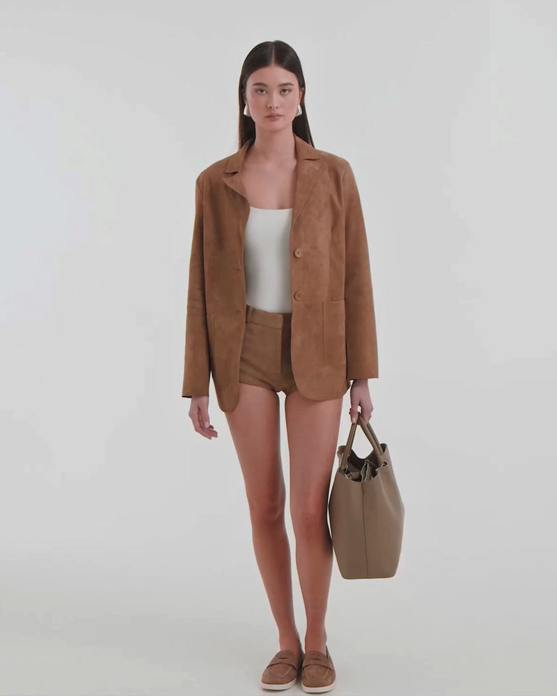 La LUCINE SU par RUDSAK est un blazer en daim raffiné qui incarne une sophistication sans effort. Confectionnée avec expertise en daim souple, elle présente une silhouette ajustée avec un col structuré, trouvant l’équilibre parfait entre intemporalité et modernité. Idéale pour les superpositions, la LUCINE SU s’associe harmonieusement à des pantalons élégants ou des robes fluides. Une pièce polyvalente qui apporte une élégance discrète et de la texture à votre garde-robe, parfaite pour toutes les occasions, de jour comme de nuit.